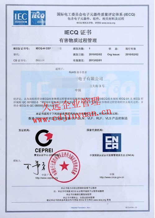 中國環(huán)境標志產品認證證書(十環(huán)認證)